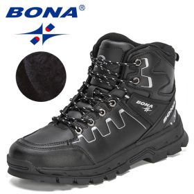 BONA 2022 New Designers Casual Winter Outdoor Snow Shoes Men Fashion Action Leather Plush Warm Boots Man High Top Hiking Shoes (Color: Black silver gray)